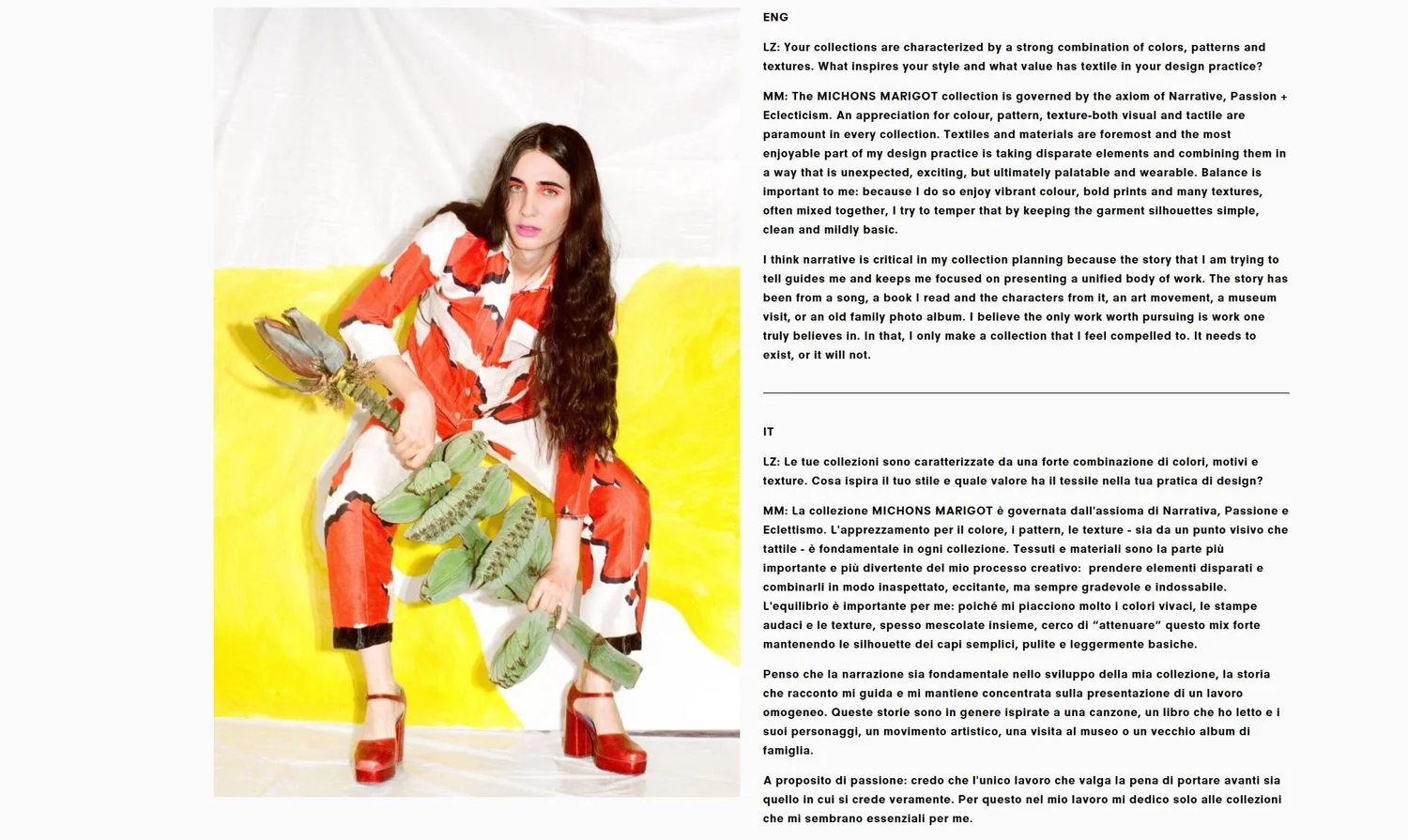 MICHONS MARIGOT FOR WWD, 2019-03-01.  FEATURED AS DESIGNER TO WATCH AT CAPSULE, AW19 MARKET.